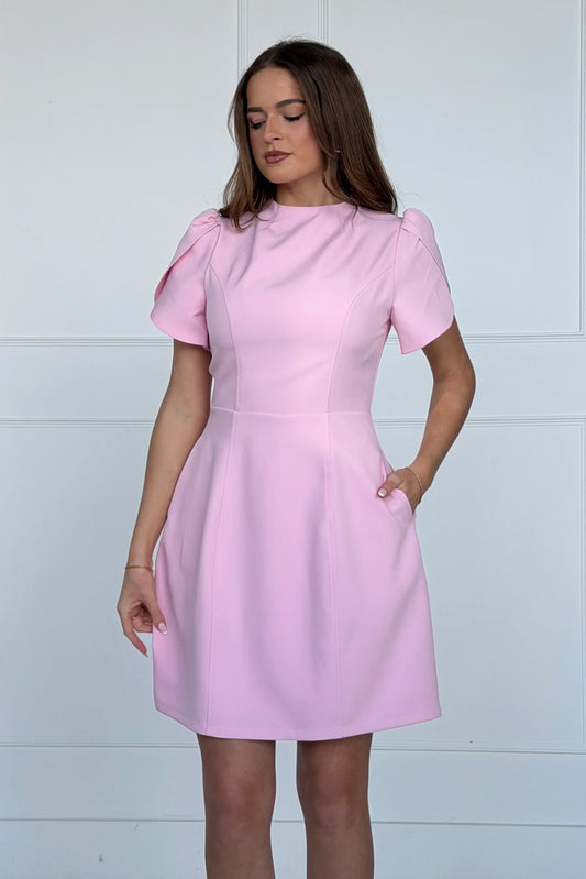 Pink Ami Tulip Sleeve High Neck Mini Dress