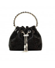 Soft Double Side Diamante bag with draw string closure and diamente embedded ring shape handle.
