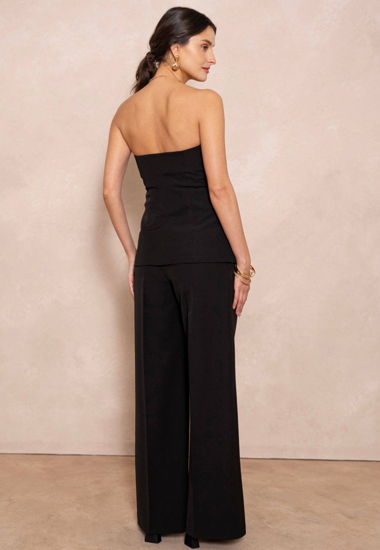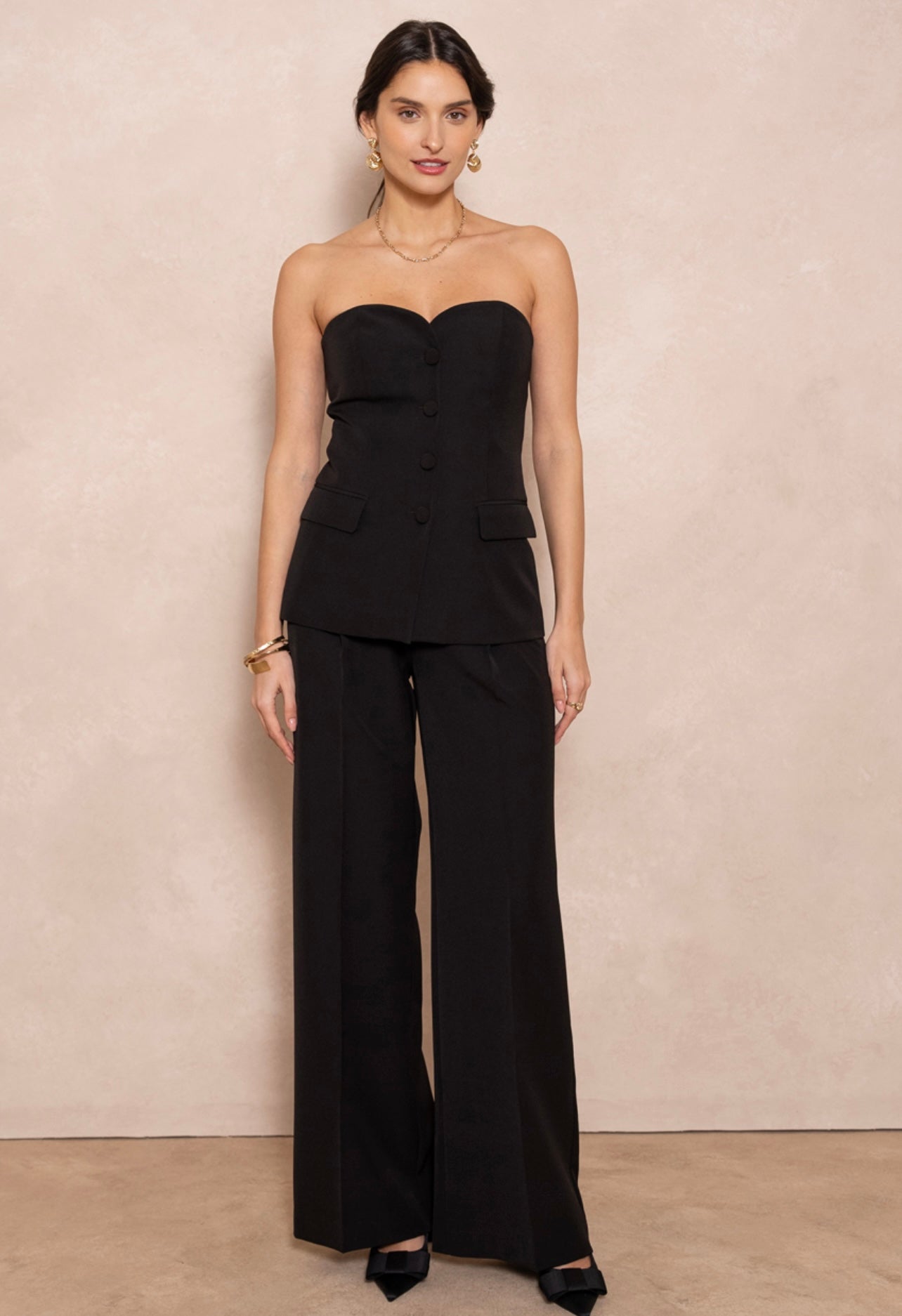 Black Tailored Button Front Bandeau Top