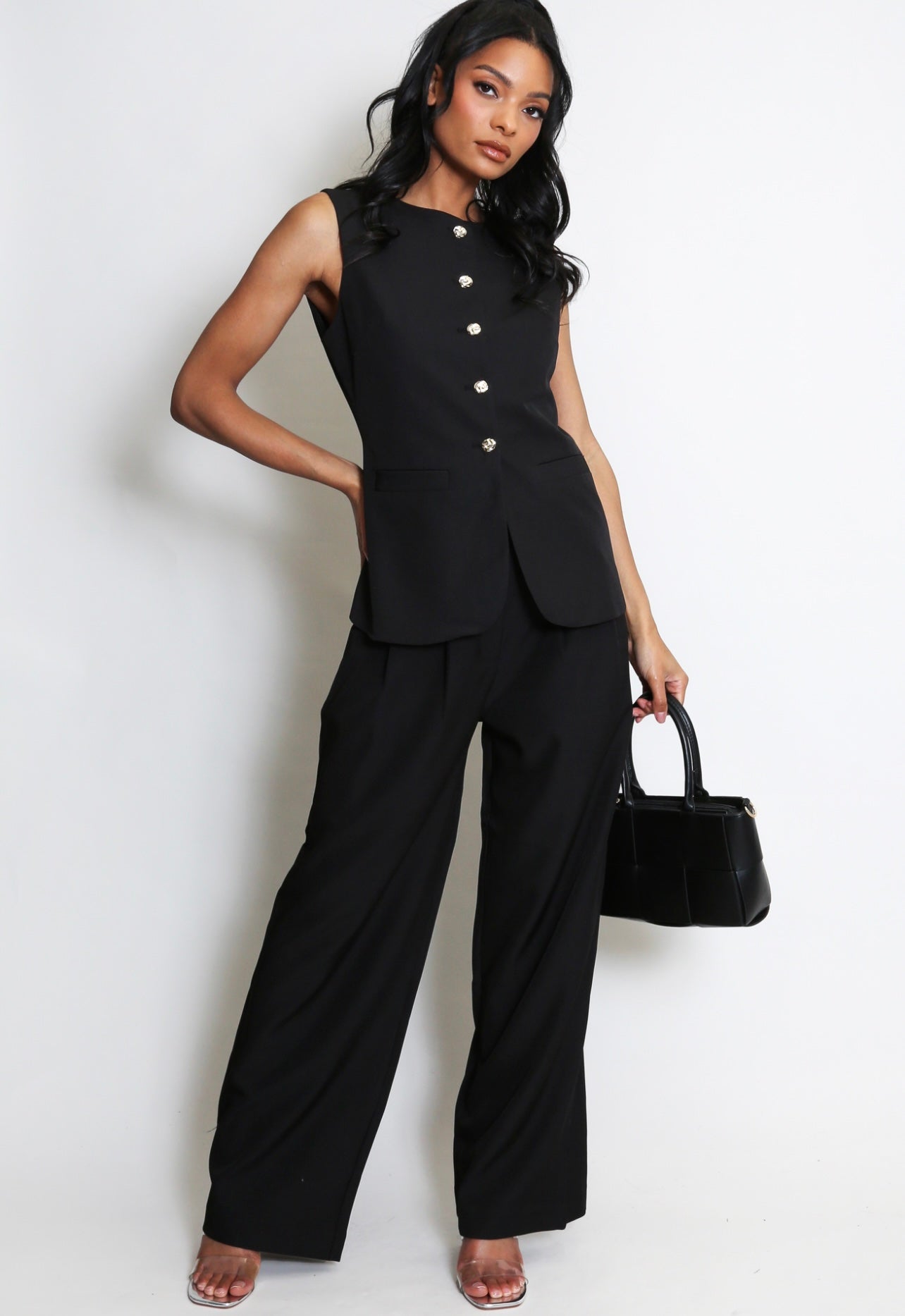 Black Tailored Button Front Waist Coat