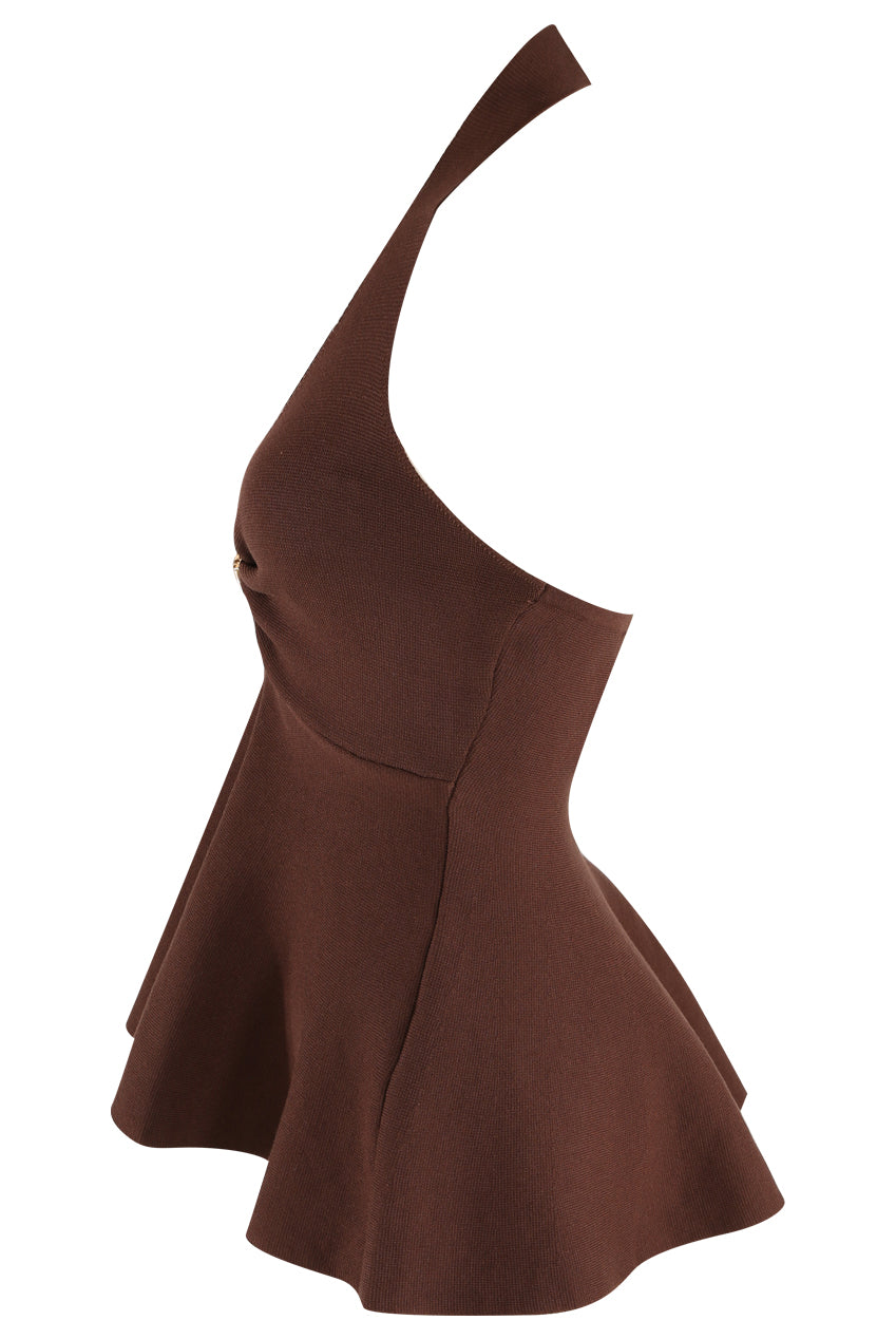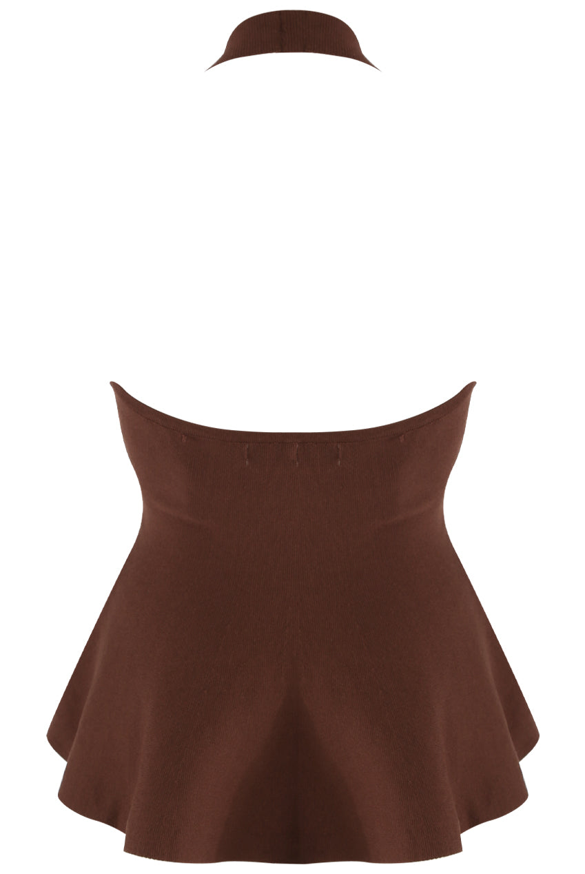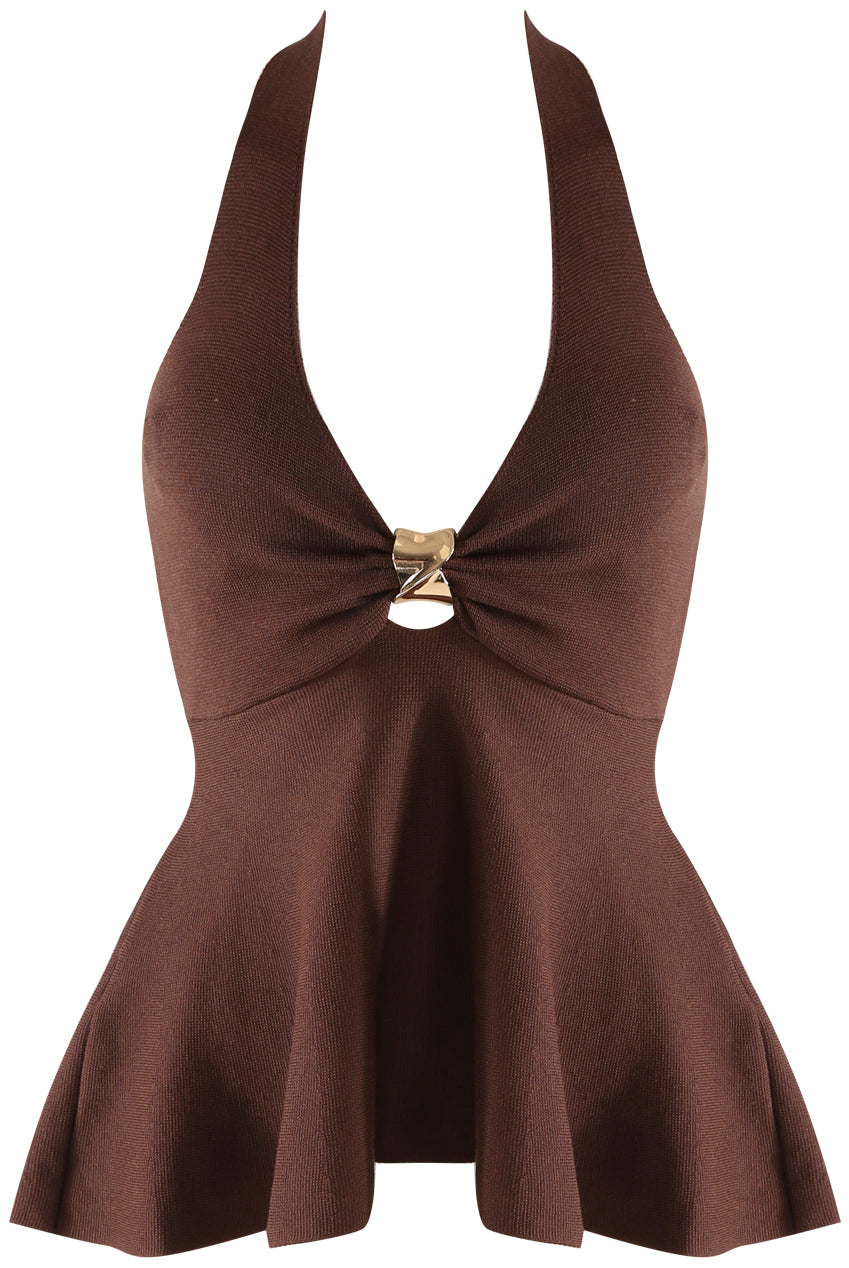 Brown Fine Knit Halter Neck Top