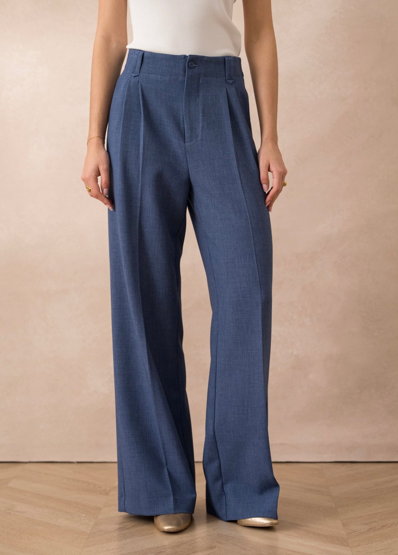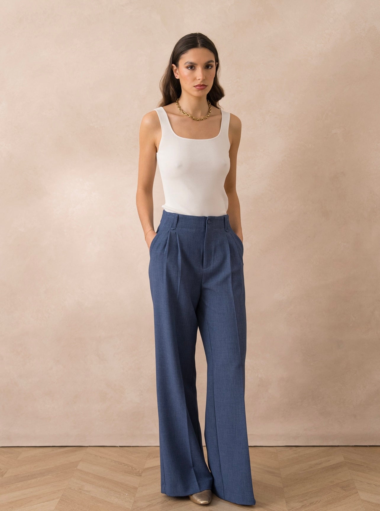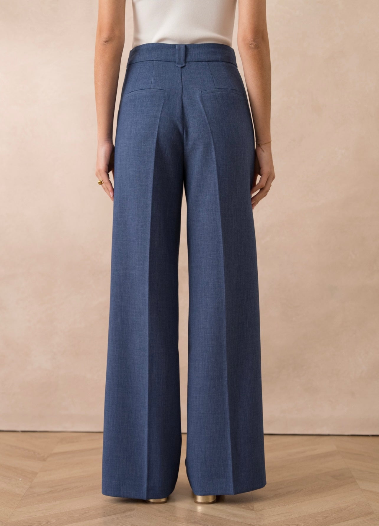 Denim Blue Tailored Single Pleat Wide Leg Trousers