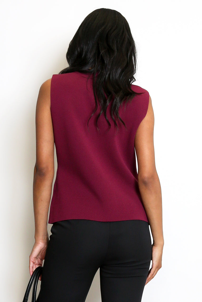 Wine Fine Knit One Button Asymmetric Waistcoat